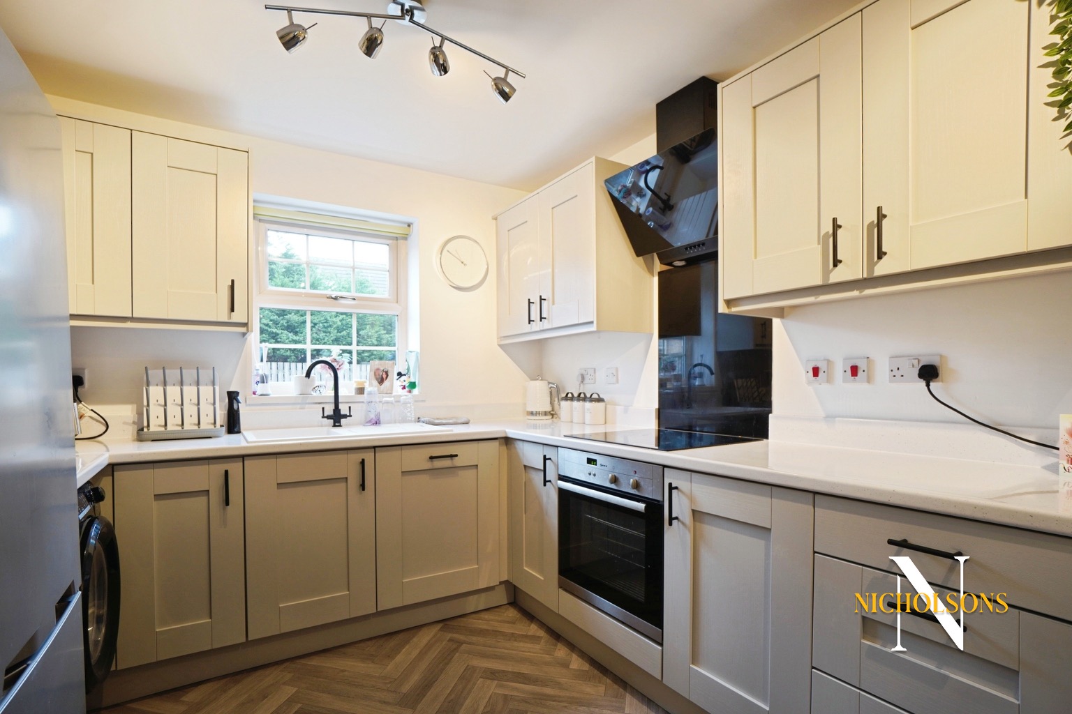 The heart of this charming home is its inviting kitchen and living area. The kitchen has been thoughtfully updated with a stylish grey shaker-style design, providing a fresh and modern aesthetic. This versatile space is perfect for both everyday family life and entertaining guests, allowing for seamless interaction between cooking, dining, and relaxation. Natural light floods the area, creating a bright and airy atmosphere throughout.