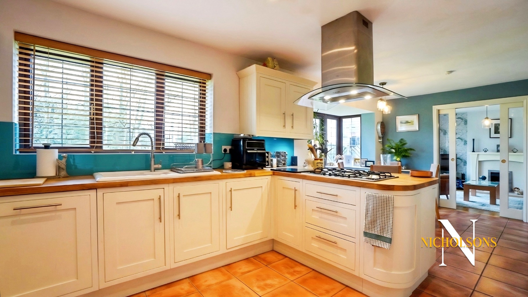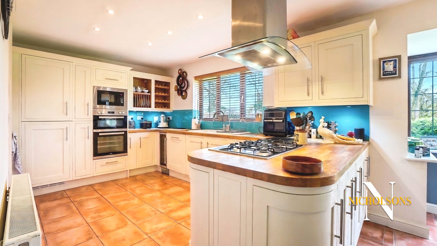 Timeless shaker style kitchen with solid wood work surfaces with a full range of integral appliances